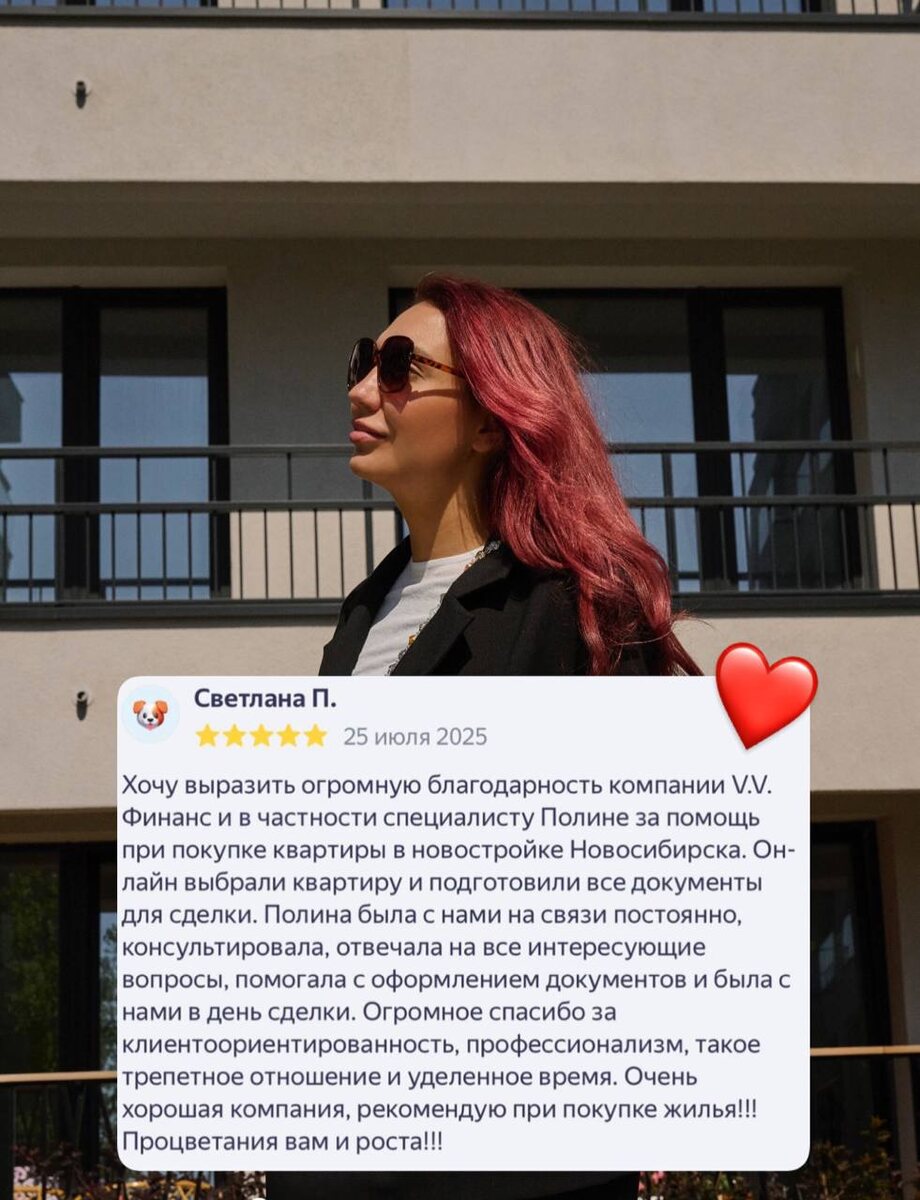 Пожалуй, самая лучшая часть нашего сотрудничества ❤️ 🔸Напоминаем, у нас бесплатный подбор новостроек – мы работаем для вас, не требуя оплаты за наши консультации и помощь в поиске идеальной недвижимости. 🔸Мы помогаем на всех этапах сделки – от подбора вариантов до оформления документов. ✅Отзывы наших клиентов – лучшая гарантия качества. 🔗Оставляйте заявку в чат-боте, мы свяжется с вами и поможем сделать правильный выбор!