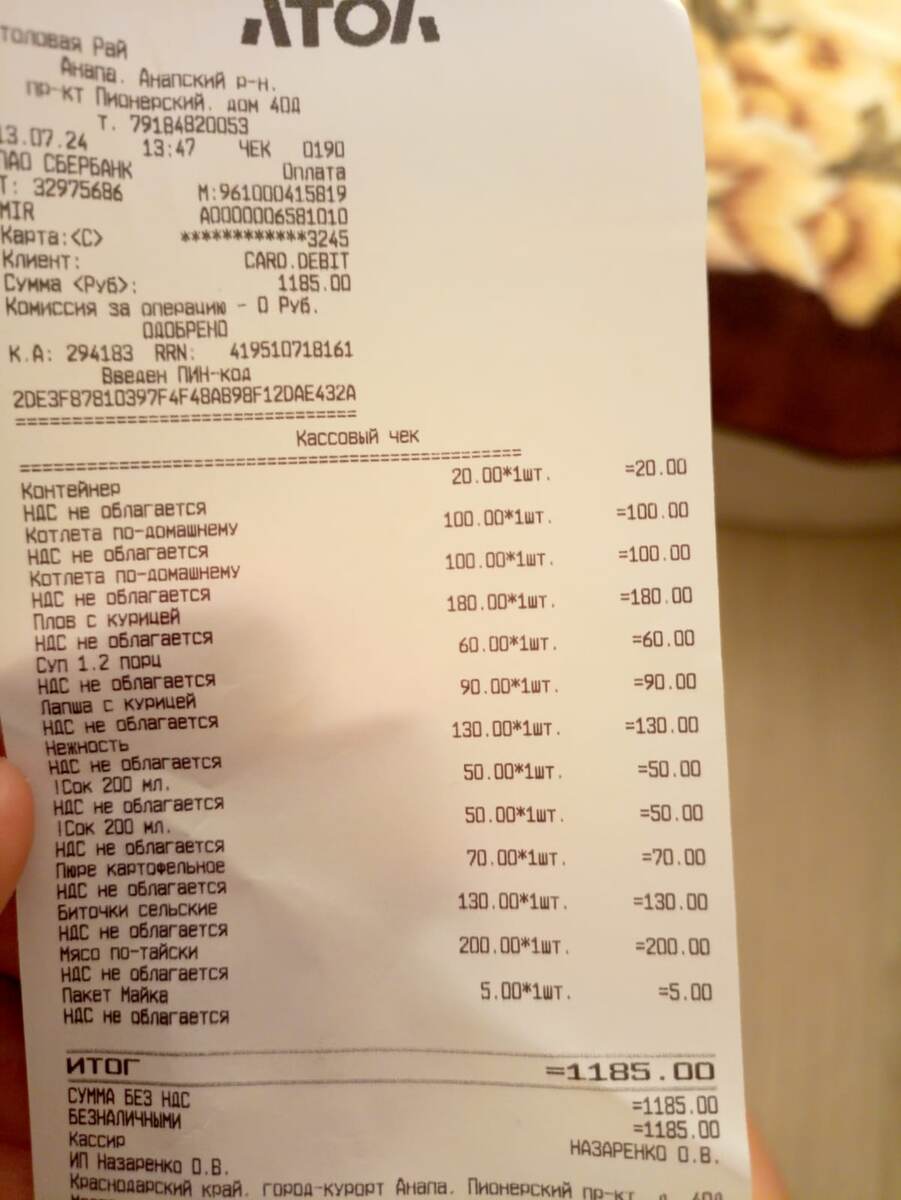Приложу тут чек одной из наших трапез👇