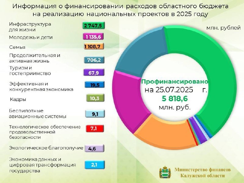 📌Информация о финансировании расходов областного бюджета на реализацию национальных проектов в 2025 году. В соответствии с уточненной сводной бюджетной росписью областного бюджета на 2025 год на реализацию национальных проектов в 2025 году предусмотрено 12 660,2 млн. рублей. Финансирование национальных проектов по состоянию на 25.07.2025 года составило 5818,6 млн. рублей.