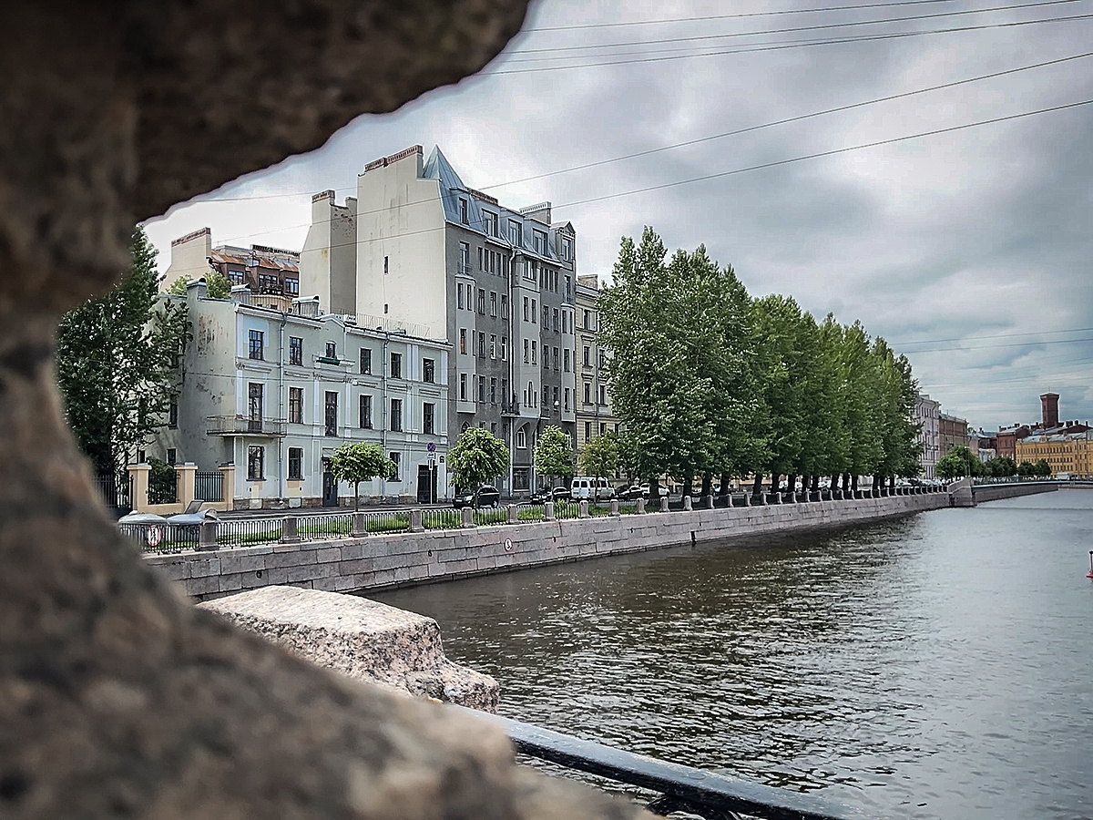 Когда-то участок был единым, сквозным, от набережной канала Грибоедова до Канонерской улицы. Вид на старый дом из окна дворовой парадной дома Трайнина.