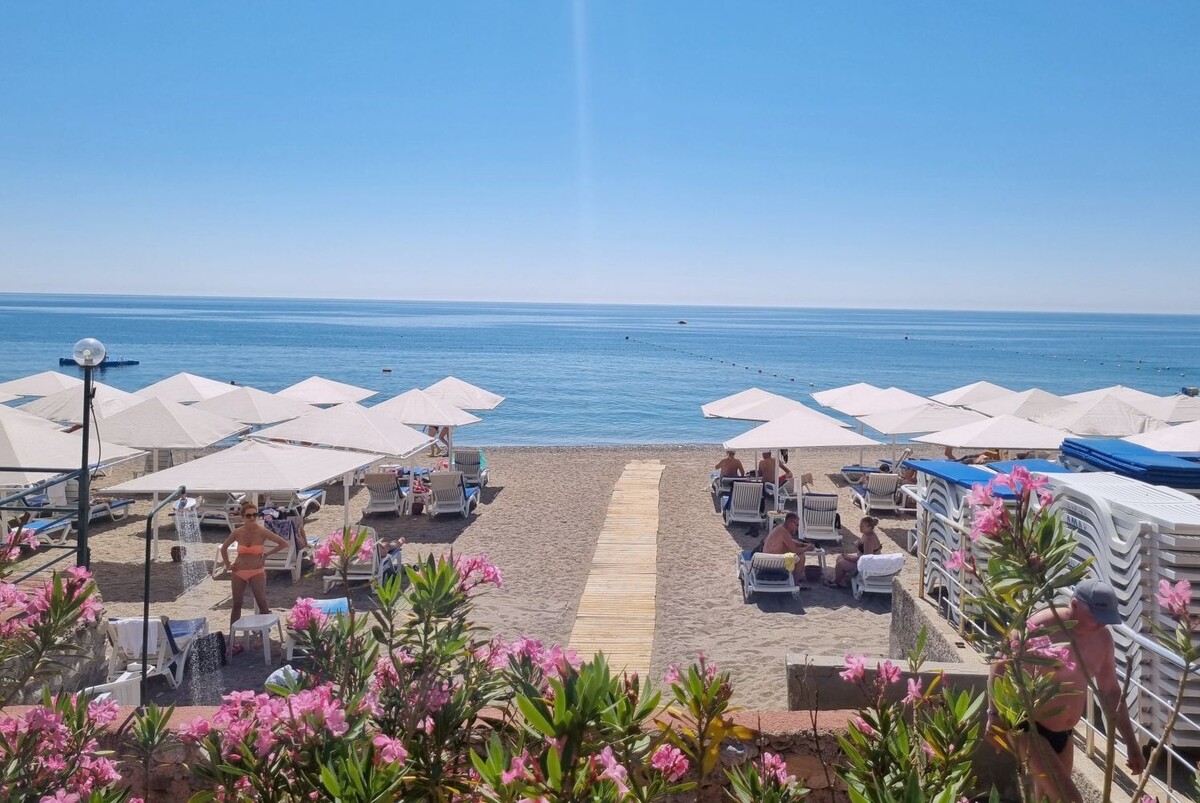 Плюсы: хорошее соотношение цены и качества, первая линия, пологий вход в море, нет волн.