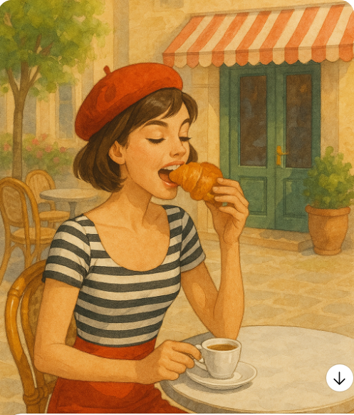 Представьте: парижанка сидит в кафе с круассаном и кофе. Она не листает телефон и никуда не торопится. Она откусывает небольшой кусочек, медленно жуёт, наслаждаясь хрустящей корочкой и нежной серединкой. Через 20 минут круассан съеден полностью, она сыта и довольна. А главное — этого ей хватит до обеда. Секрет не в круассане. Секрет в том, как она его ест. Нашему мозгу требуется именно 20 минут, чтобы получить сигнал о насыщении от желудка. Французы интуитивно следуют этому правилу на протяжении веков. Пока мы за 3 минуты съедаем бутерброд и остаёмся голодными, они растягивают удовольствие и естественным образом съедают меньше. Простая фишка: кладите вилку или ложку на стол после каждого кусочка. Это автоматически замедлит темп. Французы, сами того не осознавая, во время еды задают себе три вопроса: Попробуйте прямо сейчас: во время следующего приёма пищи остановитесь на середине и честно ответьте на эти вопросы. Французы накладывают еду один раз и едят только с тарелки. Никаких доеда