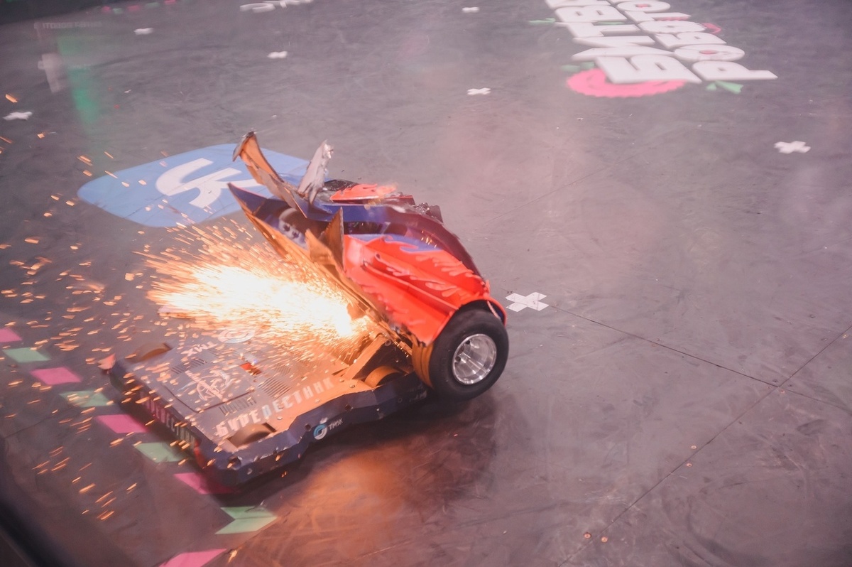 Робот, как буревестник в небе — резкий, точный и не сбивается с курса. Команда «Наследники земли 2» из Москвы показала свою разработку для чемпионата «Битва Роботов» — машину с мощным вертикальным спиннером. Главный ударный модуль «Буревестника» — вертикальный спиннер, расположенный по центру корпуса. Он развивает скорость до 13 000 оборотов в минуту и оснащён зубчатыми наконечниками, которые наносят точечные удары и способны нарушать устойчивость оппонента. Конструкция робота низкая и плотная, что обеспечивает стабильность при манёврах. Формой и динамикой он напоминает птицу, летящую низко над волнами: маневренную и уверенную. Передняя часть усилена направляющими выступами, помогающими удерживать противника в зоне действия спиннера. «Мы хотели, чтобы робот воплотил образ буревестника — точного и быстрого. Он атакует первым, не давая сбиться с курса — ни себе, ни сопернику», — поделились участники команды. Ранее сообщалось, что приём заявок на участие в третьем сезоне Международного че