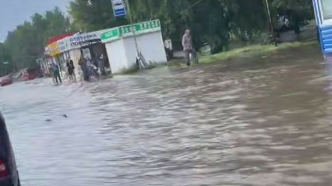В Барнауле из-за ливня и гигантских луж перекрыли движение на улице Попова