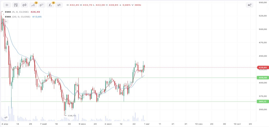 ΠΠΎΡΠΈΡΠΎΠ²ΠΊΠΈ ΠΏΡΠΎΠ±ΠΈΠ»ΠΈ ΡΡΠΎΠ²Π΅Π½Ρ ΡΠΎΠΏΡΠΎΡΠΈΠ²Π»Π΅Π½ΠΈΡ ΠΈ Π²Π΅ΡΠ½ΡΠ»ΠΈΡΡ ΠΊ Π½Π΅ΠΌΡ Π² ΠΊΠ°ΡΠ΅ΡΡΠ²Π΅ ΡΡΠΎΠ²Π½Ρ ΠΏΠΎΠ΄Π΄Π΅ΡΠΆΠΊΠΈ. ΠΡΠΈ ΠΎΠ±ΡΠ΅ΠΌΠ΅ ΠΏΠΎΠ·ΠΈΡΠΈΠΈ 10% ΠΈ Π²ΡΡΡΠ°Π²Π»Π΅Π½ΠΈΠΈ ΡΡΠΎΠΏ-Π·Π°ΡΠ²ΠΊΠΈ Π½Π° ΡΡΠΎΠ²Π½Π΅ 399,9 ΡΡΠ±. ΡΠΈΡΠΊ Π½Π° ΠΏΠΎΡΡΡΠ΅Π»Ρ ΡΠΎΡΡΠ°Π²ΠΈΡ 0,67%. Π‘ΠΎΠΎΡΠ½ΠΎΡΠ΅Π½ΠΈΠ΅ ΠΏΡΠΈΠ±ΡΠ»Ρ/ΡΠΈΡΠΊ ΡΠΎΡΡΠ°Π²Π»ΡΠ΅Ρ 1,87.