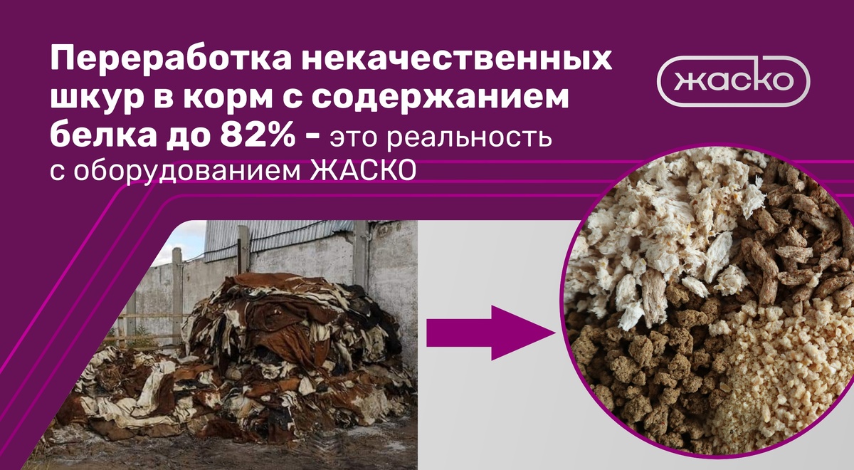 Переработка некачественных шкур в корм с содержанием белка до 82% - это реальность с оборудованием ЖАСКО