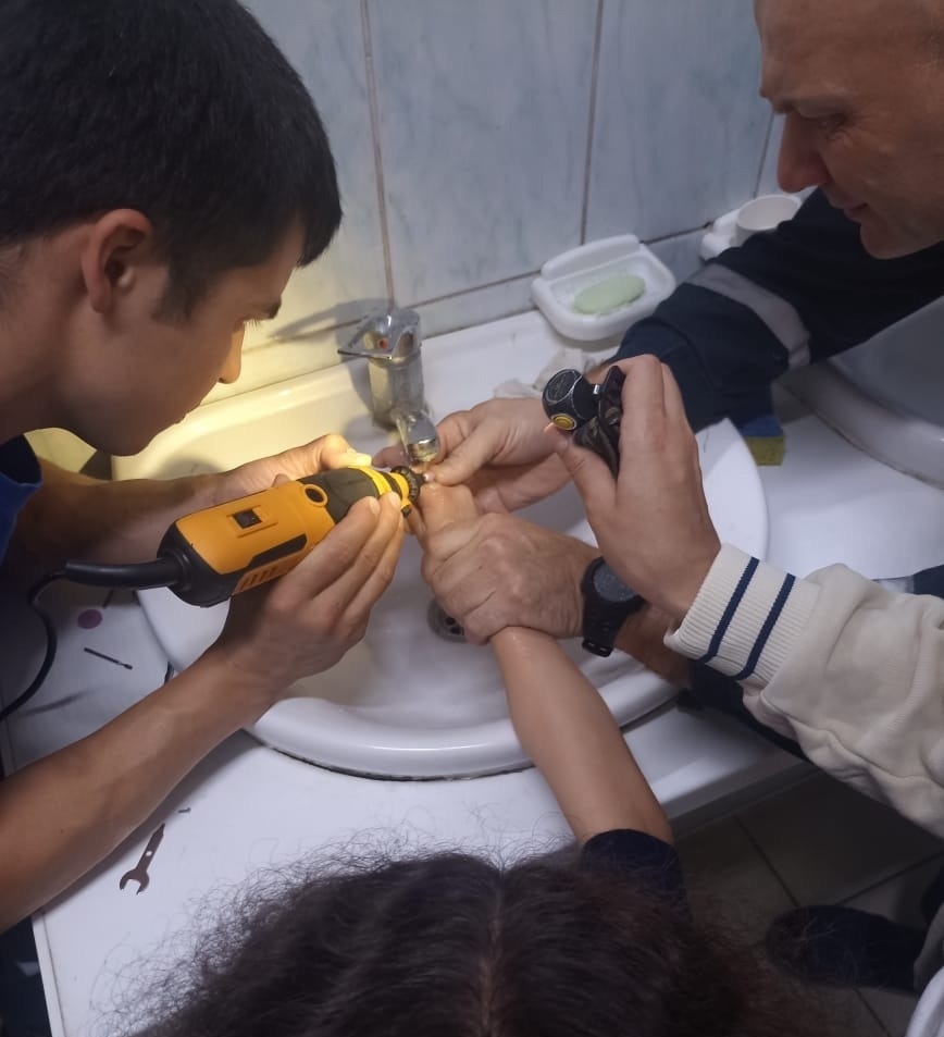 Как сообщили в пресс-службе управления гражданской защиты города, вчера родственники подростка обратились за помощью к спасателям. Девочка надела кольцо, но самостоятельно снять его не смогла. Сотрудники поисково-спасательного отряда провели настоящую ювелирную работу с использованием гравера и слесарного инструмента. Они аккуратно перепилили кольцо и освободили палец ребенка. Медицинская помощь девочке не понадобилась.
