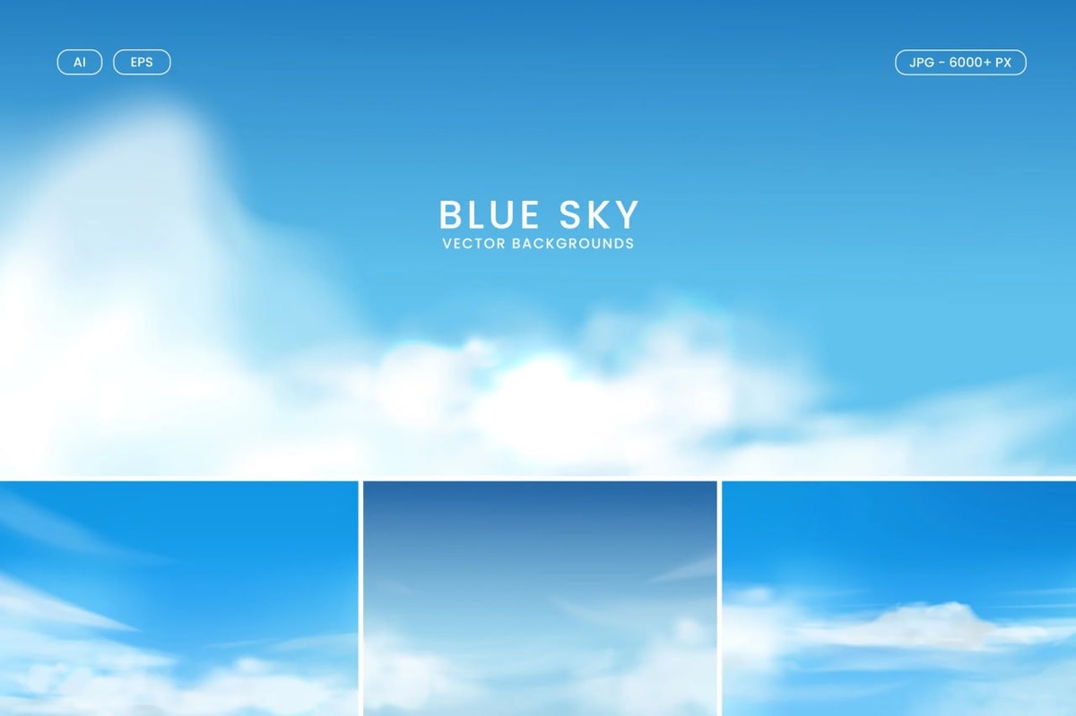 Чистые и реалистичные фоны неба с мягкими белыми облаками на фоне ярких синих градиентов, эти векторные узоры передают умиротворяющую атмосферу идеального летнего дня (4 штуки)