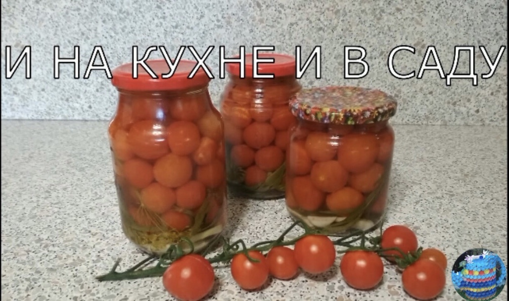 Добрый день, вы на канале И НА КУХНЕ И В САДУ. Сегодня я приготовлю ещё одну заготовку на зиму - помидоры маринованные. Для этого рецепта понадобятся приблизительно одинаковые по размеру помидоры, у меня это черри, помидоры могут быть молочные, розовые, но не перезревшие. Как всегда моем, чистим, нарезаем. Помидоры наколоть зубочисткой или вилкой вокруг плодоножки, я сделала четыре прокола, этого достаточно. В стерилизованные банки раскладываем специи: чеснок, перец горошком, лавровый лист, эстрагон, кусочек корневища хрена, зонтик укропа или семена. Укладываем помидорки. Готовим заливку: на каждый литр воды добавляем 1 ст.л. соли, 2 ст.л. сахара и 2 ст.л. 9% уксуса, но уксус мы будем добавлять в конце кипячения. Поэтому ёмкость ставим на огонь и даём прокипеть 1 - 2 минуты. Как я уже сказала, уксус добавляем в конце кипячения и заливаем помидоры горячей заливкой. Банки прикрываем прокипячёнными крышками. На дно кастрюли кладём кухонное полотенце, устанавливаем банки. Объём моей кас