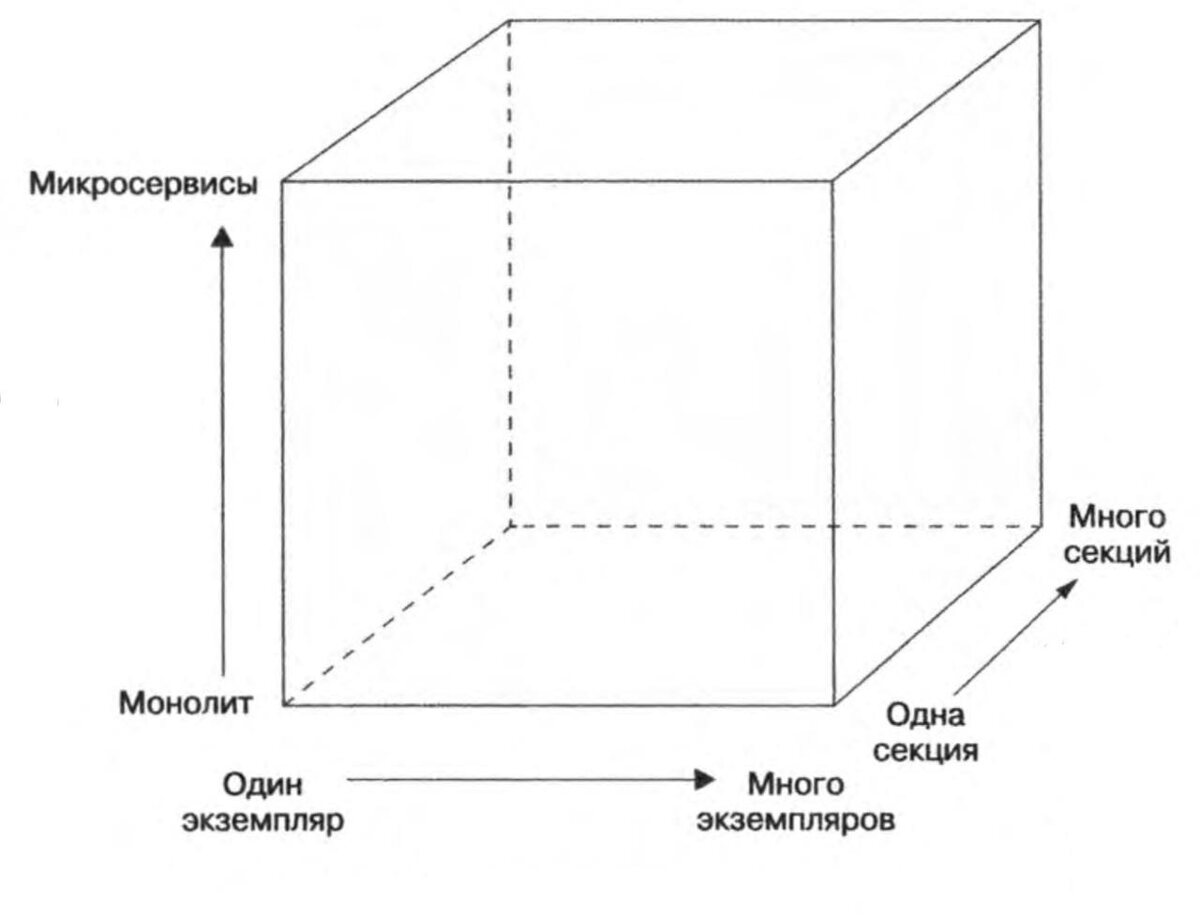 Куб масштабирования Очень удобная и полезная штука. Почему? Потому что простым языком, буквально на пальцах, объясняет принципы масштабирования приложений. Итак, у нас есть 3 оси масштабирования: X – распределение запросов между несколькими экземплярами. Горизонтальное масштабирование Z – распределение запросов в зависимости от их атрибутов. Шардирование Y – декомпозиция приложения на сервисы с разными функциями. Распил на микросервисы Подробнее об этом можно почитать в книге «Микросервисы. Паттерны разработки и рефакторинга» Криса Ричардсона. В ней на самом деле много чего интересного и полезного. А сама модель была разработана Мартином Фаулером и Джеймсом Льюисом для визуализации аспектов масштабирования. Как это работает? Обычно сначала пилят mvp в виде монолита и масштабируют его по осям X и Z, чаще всего этих манипуляций достаточно. Но если вдруг это не помогает, то тут уже смотрят в сторону оси Y. Да, модные и молодежные микросервисы, которые сейчас используются везде, на
