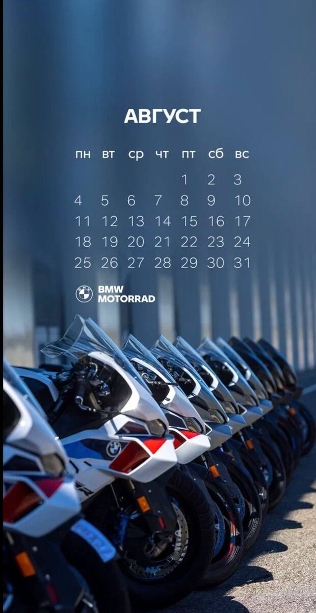 Лето было очень капризным, но август обещает быть жарким. Давайте не пропустим ни один солнечный день. Наш ежемесячный календарь как всегда в помощь. Делимся специально заранее. https://disk.yandex.ru/d/FuNHDKNaKldADQ/BMW%20Motorrad
