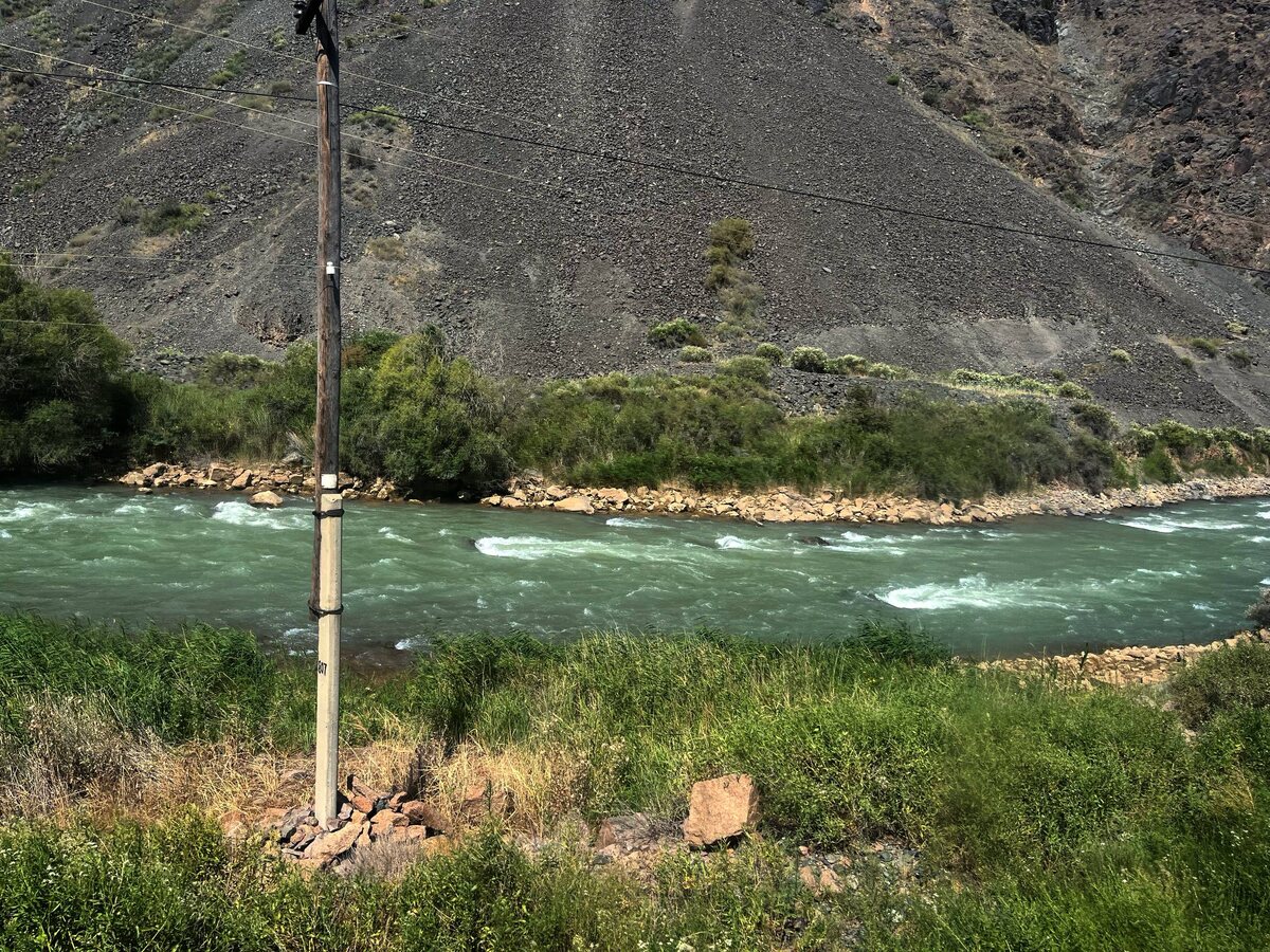 ехали мимо гор, что-то Я уже от них устал, хоть и красиво, рядом горные реки, выглядит жутко, решил прочитать про них, короч если туда попал, то усе, считай пропал, по уровню опасности они приравниваются к ущелью или пропасти, безумные течения, вихри, острое каменное дно, глубина сейчас по колено, а через шаг 3 метра, жуть
