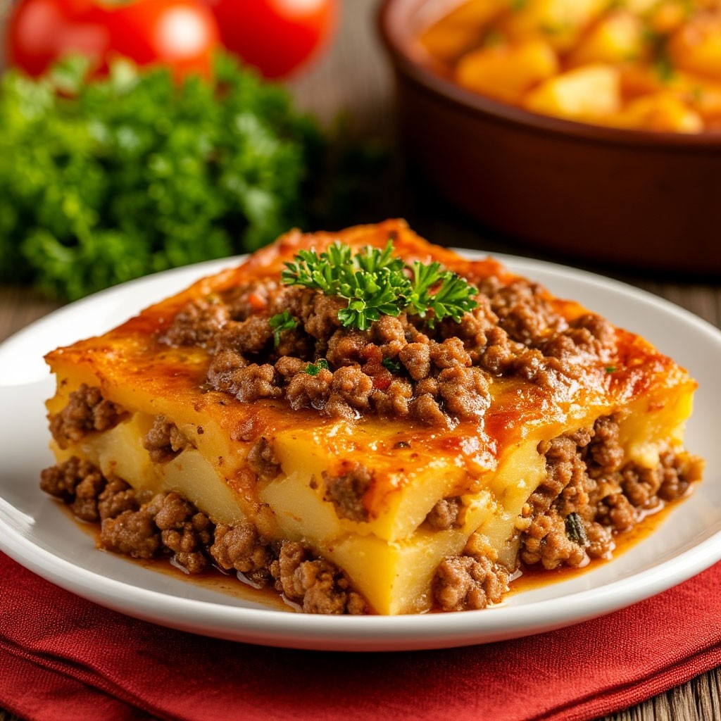 Ингредиенты: 500 г картофеля 200 г фарша (говяжьего или свиного) 1 луковица 1 морковь 2 яйца 100 мл молока 2 столовые ложки муки соль и перец по вкусу растительное масло для жарки Приготовление: Очистите картофель и нарежьте его кубиками. Отварите в подсоленной воде до готовности. Слейте воду и разомните картофель в пюре. Нарежьте лук и морковь кубиками и обжарьте на растительном масле до золотистого цвета. Добавьте фарш и обжаривайте до готовности, периодически помешивая. Посолите и поперчите по вкусу. Смешайте картофельное пюре с фаршем, добавьте яйца, молоко, муку и хорошо перемешайте. Разогрейте сковороду с растительным маслом и выложите картофельную массу. Разровняйте поверхность и запекайте в духовке при температуре 180 градусов до золотистой корочки (около 30 минут). Подавайте запеканку горячей, посыпав свежей зеленью.