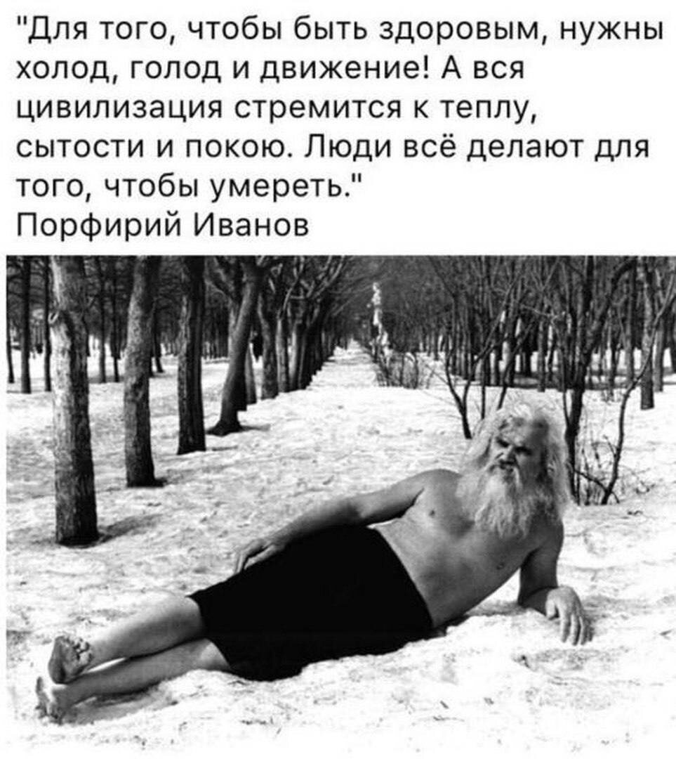 Убеждаюсь в который раз что православие отвечает всем требованиям и здоровья и духовного развития, и здравого смысла. Например, как советы этого известного всем человека, который, как написано в интернете, не был православным и даже христианином; перекликаются с православием. 4 и 5 пункт особенно 1. Два раза в день купайся в холодной природной воде, чтобы тебе было хорошо. Купайся, в чем можешь: в озере, речке, ванне, принимай душ или обливайся. Горячее купание заверши холодным. ⠀ 2. Перед купанием или после него, а если и возможно, совместно с ним, выйди на природу, встань босыми ногами на землю, а зимой на снег, хотя бы на 1–2 минуты, вдохни через рот несколько раз воздух и мысленно попроси себе и пожелай всем людям здоровья. ⠀ 3. Не употребляй алкоголя и не кури. ⠀ 4. Старайся хоть раз в неделю полностью обходиться без пищи и воды с пятницы 18–20 часов до 12 часов воскресенья. Если трудно, держись хотя бы сутки. ⠀ 5. В 12 часов воскресенья выйди на природу босиком и несколько раз