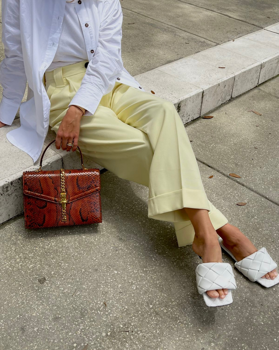 - Костюм оверсайз + лаконичные мюли для современного делового образа