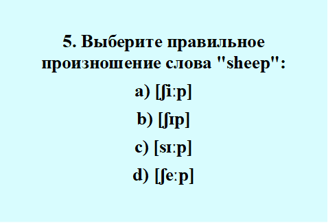 5. Выберите правильное произношение слова "sheep":