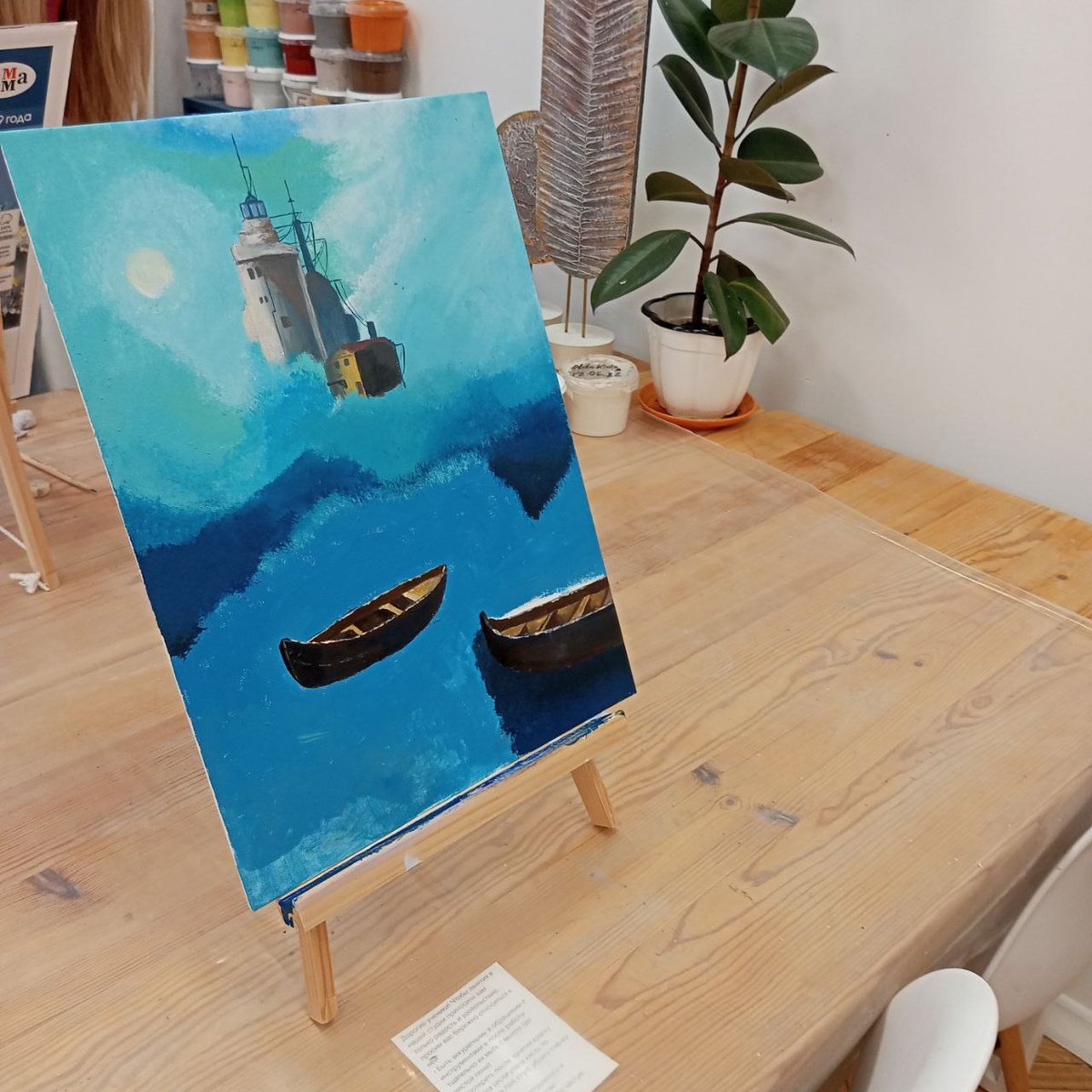 В выходные я снова оказалась в своей уютной студии рисования. Там всегда особая атмосфера: лёгкий запах красок, тёплый свет ламп, мягкая музыка на фоне — и будто мир замедляется. На холсте у меня сейчас море. Такое бескрайнее, с будущими волнами, которые упорно не хотят ложиться так, как я вижу их в голове. Кажется, я бьюсь с ними уже вечность — два занятия подряд, и всё равно они каждый раз получаются другими. Лодочки тоже пока капризные, но, может быть, в этом и есть своя красота — в их несовершенстве. А где-то вдали, растворяясь в тумане, вырастает замок. Он как загадка: видно очертания башен, но не ясно, что же скрывается внутри. Словно это приглашение в другой мир, полный тайн и историй, которые ещё предстоит придумать. У меня осталось всего два занятия, и я очень надеюсь успеть закончить эту картину. Но, если честно, сам процесс для меня важнее результата. Есть в нём что-то медитативное — когда кисть скользит по холсту, мысли становятся тише, а внутри рождается ощущение покоя. Эт