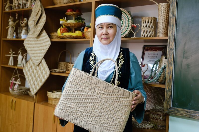 Растительный мир Астраханского края богат и разнообразен. В большом изобилии по берегам здешних рек и ериков растёт удивительное растение – чакан (рогоз). Наши предки использовали его при изготовлении, как мы сейчас говорим, чистых экологических изделий. Одним из мест традиционного распространения народных художественных промыслов в Астраханской области является посёлок Камардан Володарского района. В 80-х годах прошлого столетия в этом посёлке базировалась артель «Каспийские Умельцы» по чаканоплетению, где мастера создавали произведения декоративно-прикладного искусства, отражающие и древние традиции, и быт, и современную культуру народов многонационального Астраханского края. Зимбиля, туески, корзиночки, лукошки, хлебницы, подставки под горячее, лапти из чакана были известны не только в России, но и за рубежом, и пользовались большим спросом. Гульнара Пахтовна Джаналиева - мастер по чаканоплетению, родом из посёлка Камардан. Ей повезло работать и обучаться у талантливых мастеров «Кас