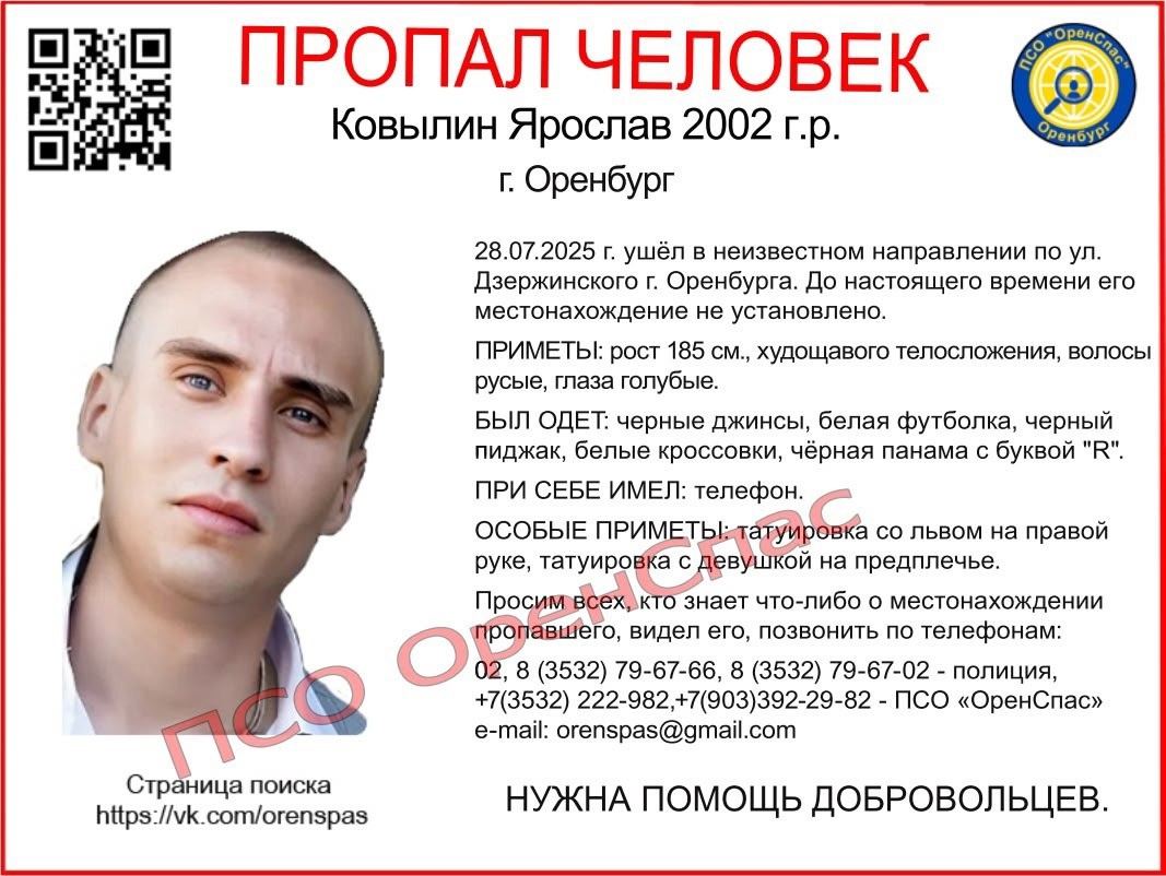 Пропал человек, Ковылин Ярослав, 2002 г.р. город Оренбург.