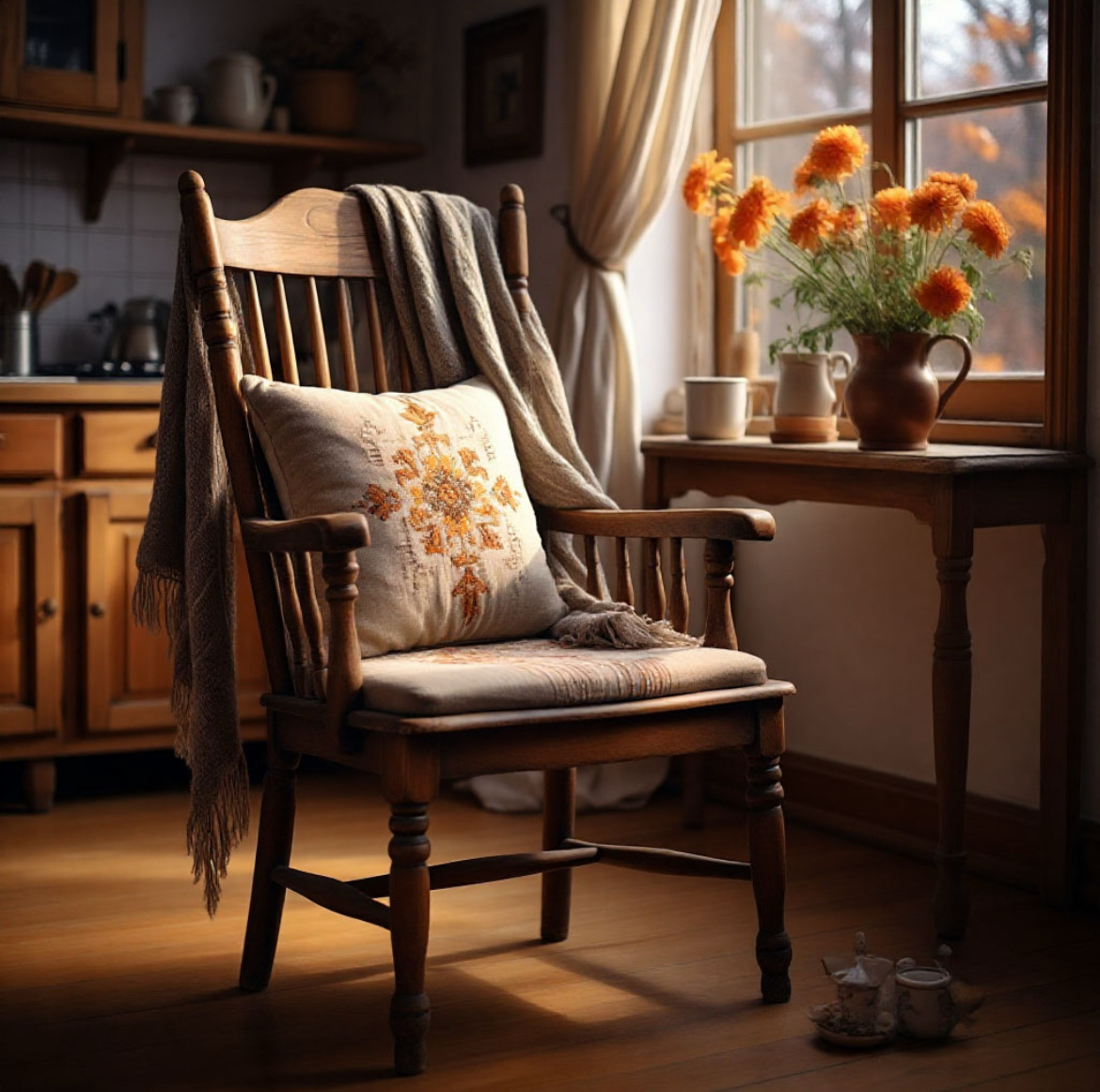 …Иногда, по вечерам, когда дом стихает и остаюсь одна на кухне, я невольно глажу деревянные подлокотники. Словно благодарю их за всё: уютные разговоры, поддержанные тайны, близость и понимание. Ведь главное — чтобы у каждого нашлось место, где его ждут. Где поймут. Где можно быть собой. Пусть даже просто на стареньком кухонном стуле…