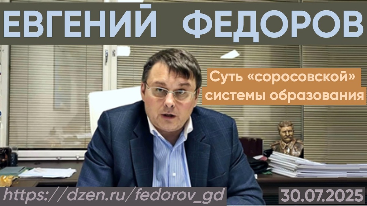 "Позиция, на которой построена вся система российского образования — «соросовская»: не лезть, не быть профессионалом ни в чем. Если обратить внимание, то вся работа российской системы образования направлена на то, чтобы дети не разбирались глубоко ни в одной области. Все дается поверхностно, разжевано, включая готовые ответы, которые могут быть ложными. Например, ЕГЭ построен на выборе между вариантами, среди которых не всегда есть правильные. Это подменяет критическое мышление слепым доверием. Получается: либо у человека есть мозги, либо он вынужден доверять. А если нет собственного анализа, остается только доверие — а его легко обмануть, контролируя информационную среду".