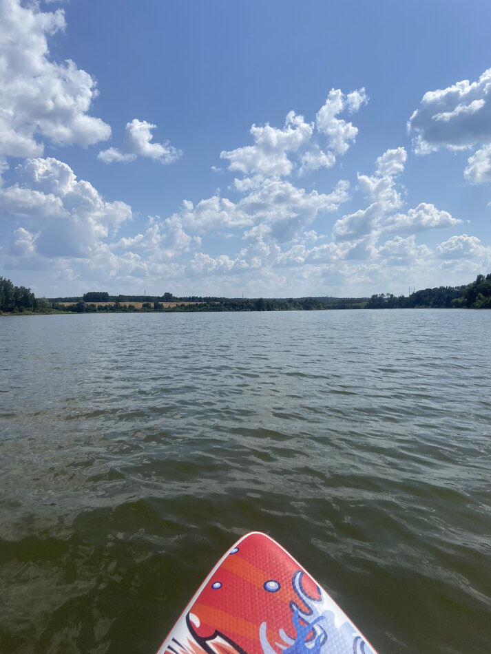 Когда тревога сжимает грудь, а мысли крутятся как водоворот, сап-серфинг может стать настоящим спасением. Вода, небо и ритмичное движение создают идеальные условия для практики осознанности. Вот простая техника, которая поможет вернуть спокойствие. 1. Заземление: почувствуйте опору Встаньте на доску, слегка согните колени и распределите вес равномерно. Закройте глаза (если чувствуете баланс) и представьте, как ваши стопы «врастают» в доску, а она становится частью воды. Или займите устойчивое положение сидя, как вам удобнее! - Ощутите, как озеро поддерживает вас.