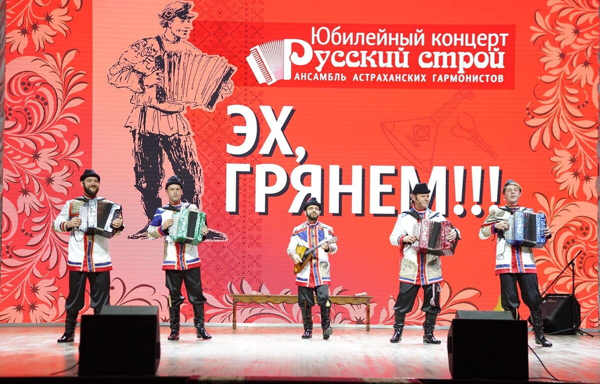 Наверное, нет более любимого в России инструмента, чем гармонь. Гармонь сегодня – не только средство извлечения музыкальных звуков, нет, гармонь - гораздо шире. Это целый культурный пласт - традиции, обычаи, обряды, история. И глубоко символично, что слова «гармонь» и «гармония» родственны, ведь меха и кнопки гармони и вправду делают жизнь людей благозвучнее и совершеннее. Как гармонь пробудила «генную память» и способствовала созданию ныне прославленного коллектива, нам поведал нынешний руководитель ансамбля астраханских гармонистов «Русский строй» Дмитрий Топалов: «Было это в далеком 2013 году. Перед очередным концертом, сидя в гримёрной с Валерием Каширским (первый руководитель ансамбля «Русский строй», прим. ред.) с которым мы вместе работали в ансамбле «Астраханская песня», я поделился с ним историей о своих корнях. Мои деды и прадеды были настоящими знатоками игры на гармошках и первыми парнями в селе. Они даже на фронт уходили с инструментами в руках. У Валерия же отец был пото