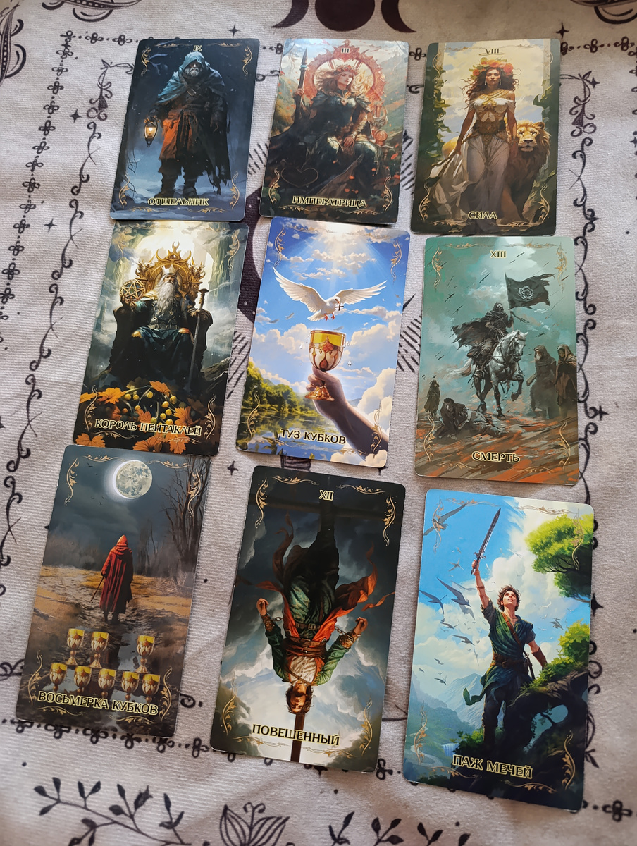 - Смерть — хотя боится перемен, здесь карта указывает на трансформацию. Возможно, нужен переход от старых моделей поведения или прошлых отношениях к чему-то новому — он готов меняться ради вас.