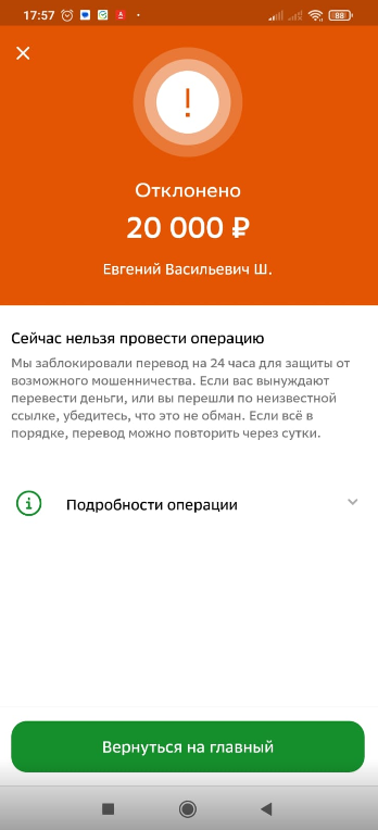 У меня лично после таких сообщений подозрение на мошенничество в этой части в отношении самого Сбера.