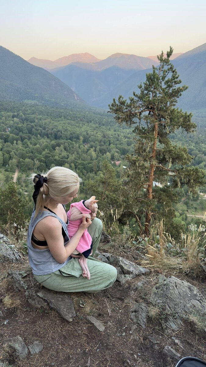 На подъеме в горку Скрипу укачало в рюкзаке 🤢 остановились подышать, стало полегче Подъем оказался чуть сложнее, чем об этом писали отзывы. И с кошкой в рюкзаке я вспомнила тренировки по стойкам в грузах 😆 Спускаться чуть сложнее, медленно, потихонечку, скрипу пришлось взять на руки, чтобы не укачивало. И вцепившись в мое плечо она разглядывал лес, мы понюхали кустики и веточки. Вернувшись Скрипа пила воду так, как будто она меня в горку несла 🤣