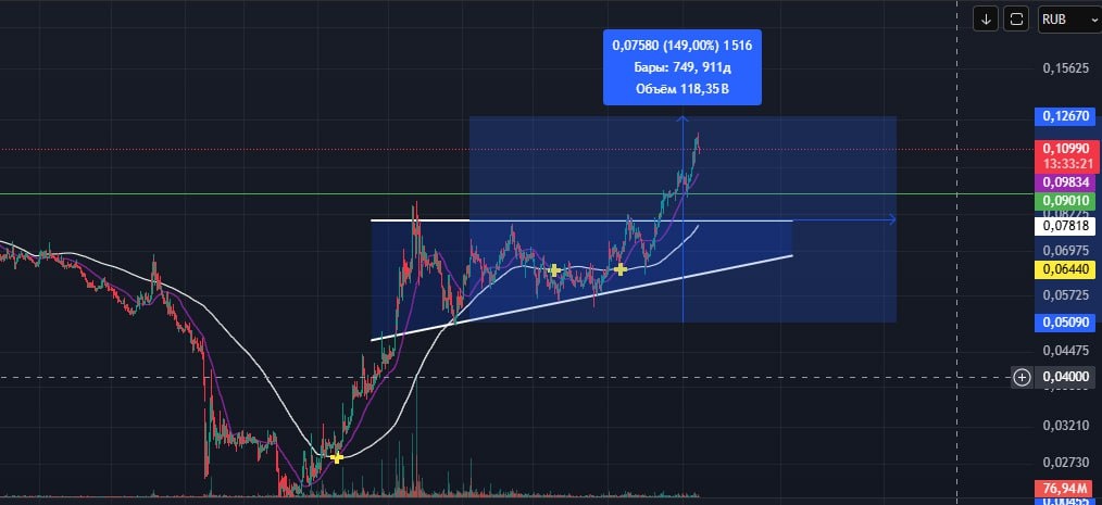 $MRKV Предыдущий разбор тут https://dzen.ru/media/tradinvesti/mrkv-682af3cd250b3b63939b6d7f - идет четко по нему. Предполагаю до 0,12 пойдет, а там уйдет на коррекцию. ✔️Читаем и радуемся - ничего не изменилось) Поздравляю тех кто заработал! Не ИИР