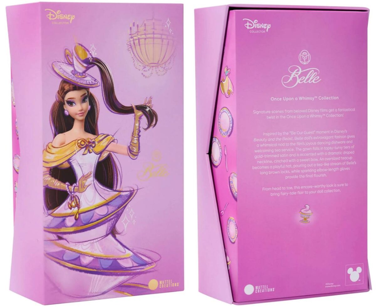Коллекция Disney Once Upon a Whimsy (Однажды в сказке) от Mattel продолжает удивлять поклонников изысканных образов и тонких отсылок к знаковым сценам из любимых мультфильмов. В этот раз в центре внимания — Бэлль, героиня диснеевского шедевра «Красавица и Чудовище». Её наряд вдохновлён весёлой, театрализованной сценой с песней Be Our Guest — ода гостеприимству, фантазии и волшебству заколдованного замка.