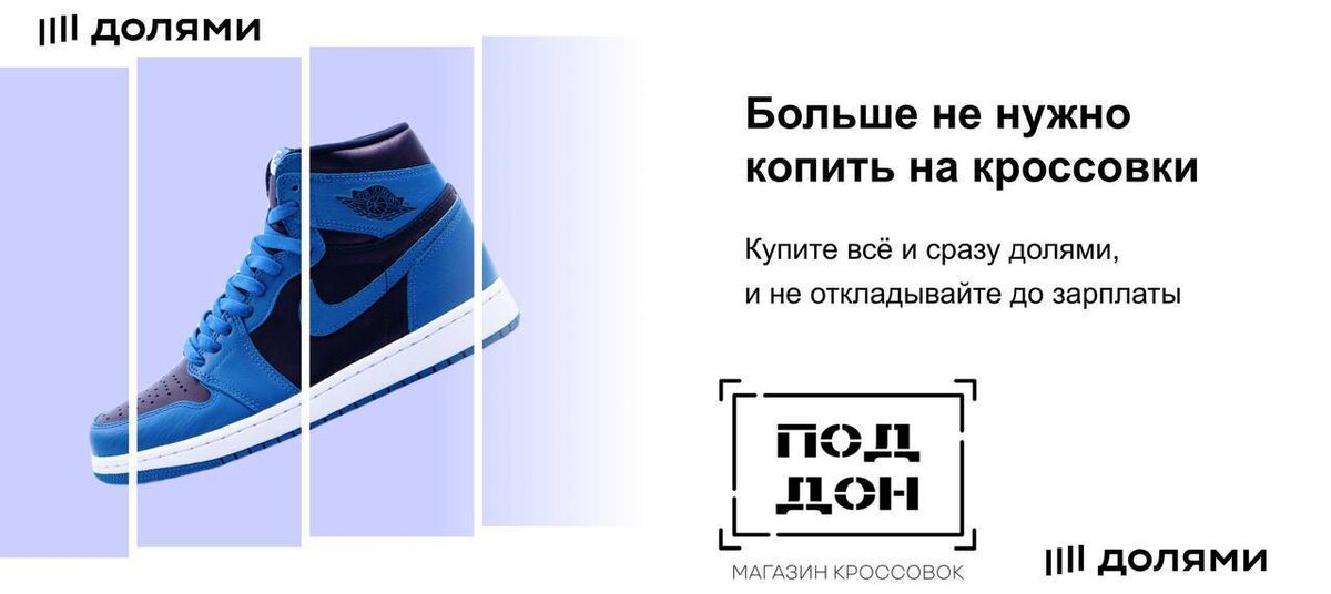 Друзья, напоминаем, что в нашем магазине можно оплатить сервисом «Долями»! Что это значит? Теперь сумму покупок в нашем магазине можно разделить на 4 равные части. 25% вы платите сразу, остальные три доли будут списываться раз в две недели. Вы получите обувь сразу, как при обычной покупке картой. Покупайте сразу - платите потом 🔥 ✔️ 4 равных платежа в течение 6 недель ✔️ никаких процентов и переплат Можно не откладывать деньги на новые кроссовки 👟. Получите покупку сразу, а оплачивайте потом и частями. Оплата «Долями» — как обычная оплата картой: нет процентной ставки, кредитного договора и комиссии. Тестируйте новый способ оплаты в магазине «Поддон». Позвольте себе больше и при этом не переплачивайте 🔥 18+