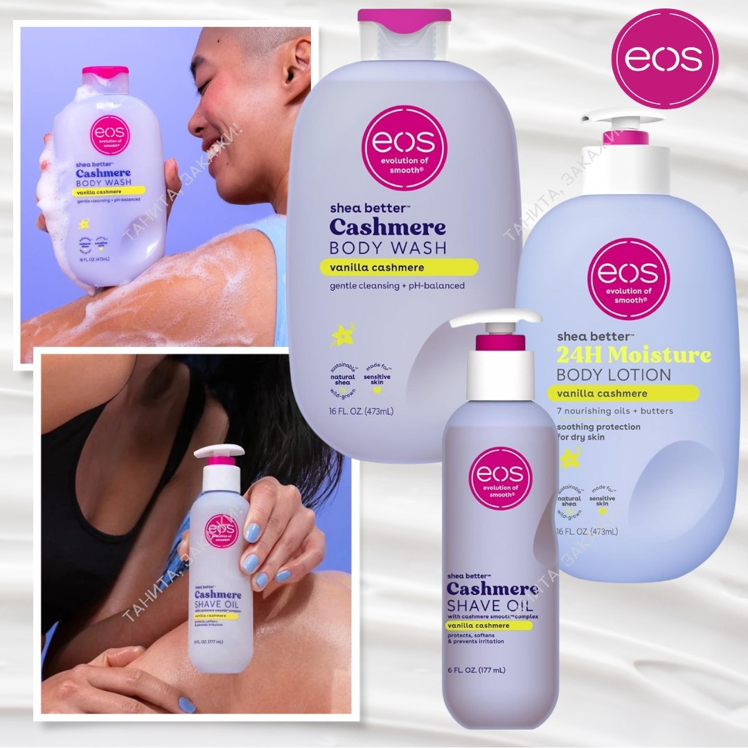 EOS Набор средств для ухода за кожей 3900₽ ➡️ 3500₽ + доставка Аромат: ванильный кашемир, обеспечивает увлажнение на 72 часа. Лосьон для тела 473 мл, гель для душа 473 мл, масло для бритья 177мл. 📩 @tanita_sadovnik 🚚 Доставка 4-6 недель 📦 ✅ 100% оригинал 🇺🇸