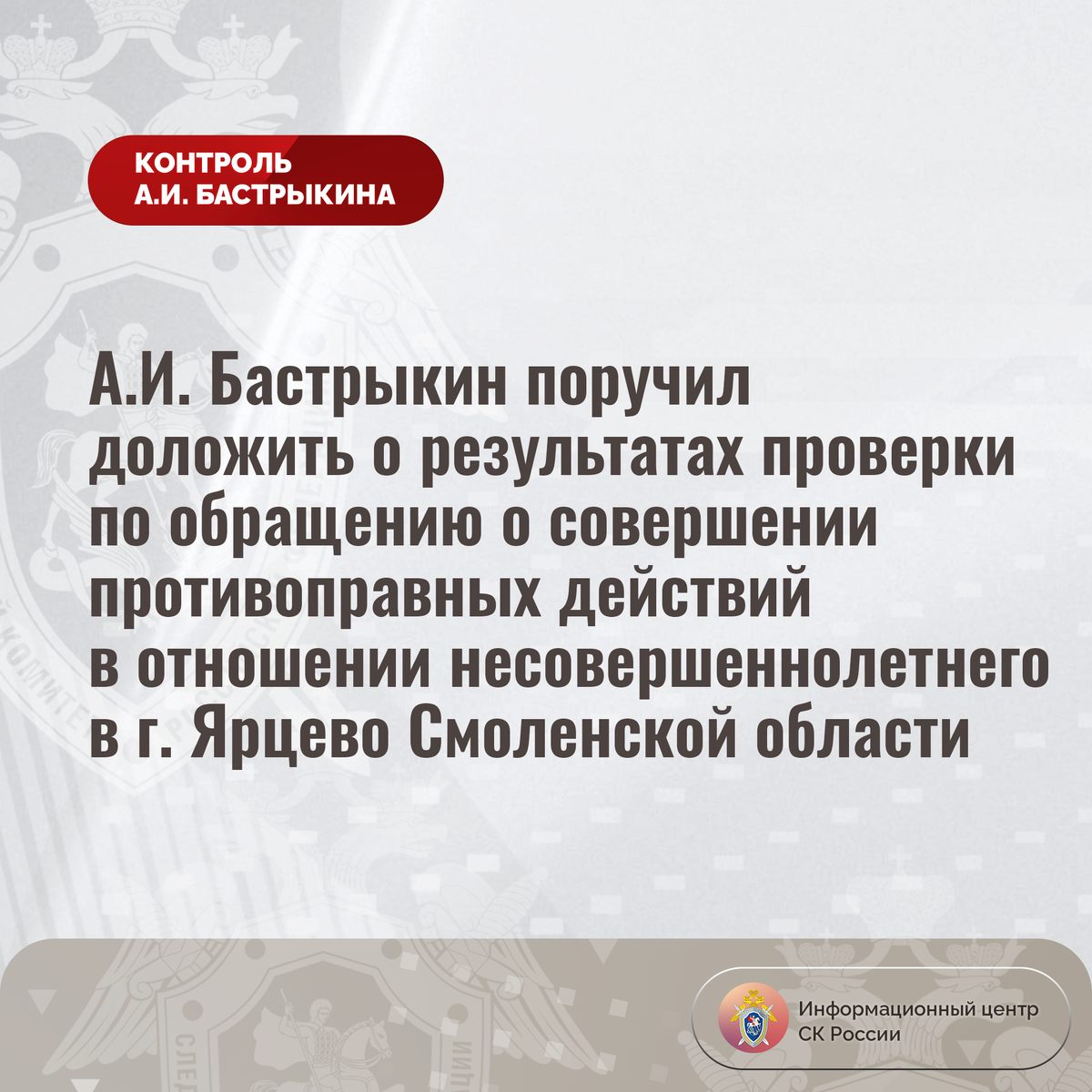 А.И. Бастрыкин поручил доложить о результатах проверки по обращению о совершении противоправных действий в отношении несовершеннолетнего в г. Ярцево Смоленской области
