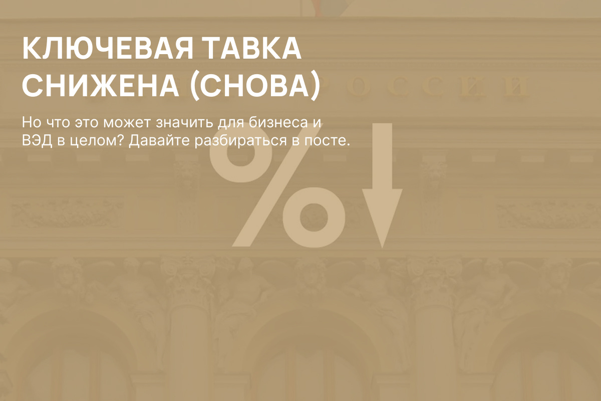 Но что это может значить для бизнеса и ВЭД в целом? Давайте разбираться в посте. 💼 Для бизнеса: кредиты станут дешевле — это должно повысить доступность финансирования для бизнесов, особенно тех, кто работает в отраслях с высокой капиталоёмкостью. Очевидные плюсы: + Проекты, которые "не бились по экономике" при ставке 20%, могут стать реализуемыми при 18% и ниже. + Уменьшение нагрузки на бизнес с долговыми обязательствами — платежи по кредитам снижаются. + Стимулирование внутреннего спроса: потребители и компании охотнее будут брать займы, увеличивая обороты. Но есть нюансы: ❗️Если ставка всё ещё остаётся двузначной, это визуально делает ее "дешевой", а на деле просто менее дорогой. ❗️Снижение ключевой ставки само по себе не волшебная таблетка, чтобы оно дало устойчивый эффект (например, рост инвестиций, оживление бизнеса, стабилизацию курса), нужно, чтобы была общая уверенность у бизнеса и инвесторов в том, что правила игры понятны и не изменятся завтра. 🌍 ВЭД: здесь тоже не все та