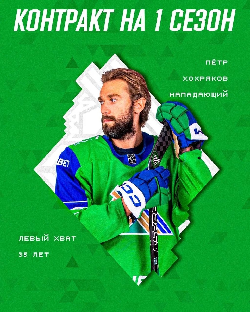 Соглашение с опытным нападающим рассчитано на один год. Петр Хохряков выступал за «Салават Юлаев» с 2018 по 2022 год, став вместе с командой бронзовым призёром КХЛ. После этого Хохряков защищал цвета челябинского «Трактора» (2022/23) и хабаровского «Амура» (2023/24). Нападающий вернулся в уфимскую команду летом 2024 года. В пресс-службе клуба подчеркнули, что самоотверженность в неравных составах и высокая самоотдача на льду — главные качества Петра. В прошлом сезоне он провел 37 матчей в регулярном чемпионате, забросив одну шайбу. Также на его счету гол в плей-офф. Ранее «Башинформ» сообщал, что «Салават Юлаев» и «СКА» совершили обмен игроками.