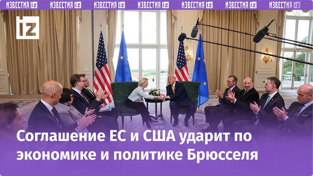 Соглашение между Вашингтоном и Брюсселем, согласно которому экспорт из Евросоюза в Америку будет облагаться 15-процентной ставкой, может сильно ударить по европейской экономике. Кроме того, такие сильные уступки продемонстрировали разобщенность внутри ЕС. Почему Брюссель согласился на невыгодные для себя условия — в материале «Известий».
