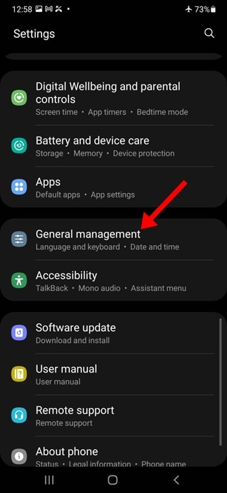2. Когда откроется приложение «Настройки», прокрутите вниз и нажмите «Общее управление» .