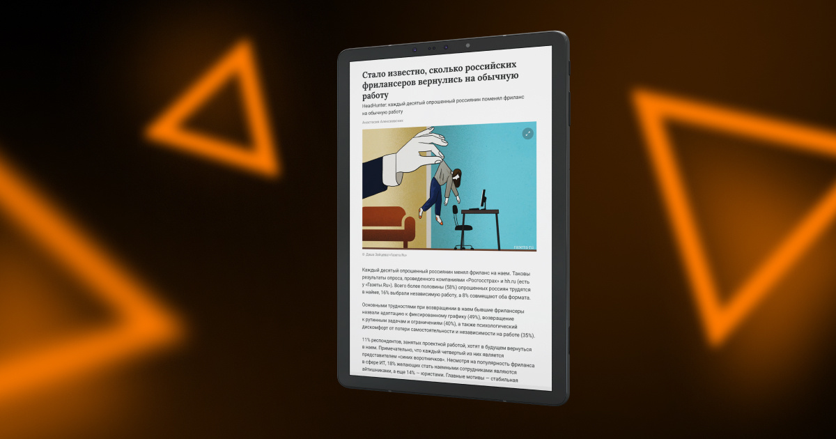 - Основными трудностями при возвращении в наем бывшие фрилансеры назвали адаптацию к фиксированному графику (49%), возвращение к рутинным задачам и ограничениям (40%), а также психологический дискомфорт от потери самостоятельности и независимости на работе (35%).