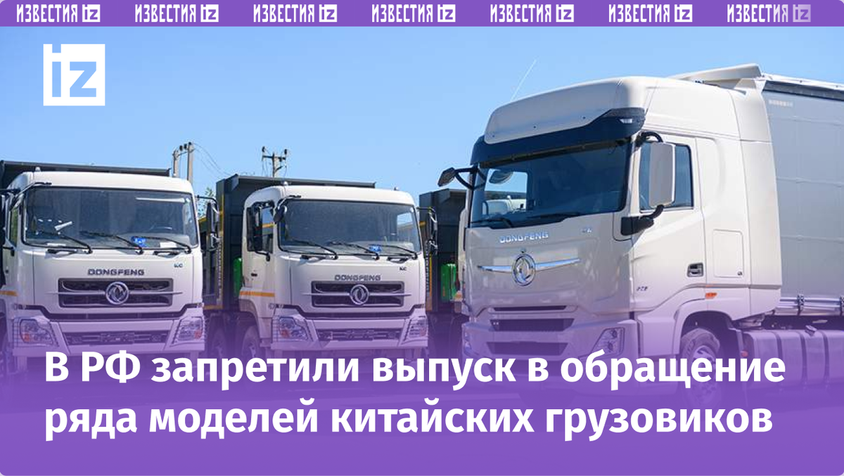 В России запретили выпуск в обращение ряда моделей китайских грузовиков марок Dongfeng, Foton, FAW и Sitrak. О приостановке действия Одобрений типа транспортного средства (ОТТС) и Одобрения типа шасси сообщил 30 июля Росстандарт. Под запрет попали Dongfeng типа DFH 4180, Foton типа BJ4189, FAW типа CA4250, CA4180, Sitrak типа ZZHS, а также шасси Foton типа M4L. Кроме того, выпуск в обращение запрещен Dongfeng типа DFH 5200B, Foton типа H5 и FAW типа JH6-B 8X4: документы соответствия этих моделей были выданы в других государствах — членах Евразийского экономического союза. Причиной запрета стали выявленные Росстандартом нарушения обязательных требований, которые «представляют значительную опасность здоровью и жизни как самих водителей транспортных средств, так и других участников дорожного движения, в том числе пешеходов», говорится в сообщении. К таким нарушениям отнесли несоответствия обязательным требованиям в части эффективности тормозной системы, уровня шума движущегося грузовика,