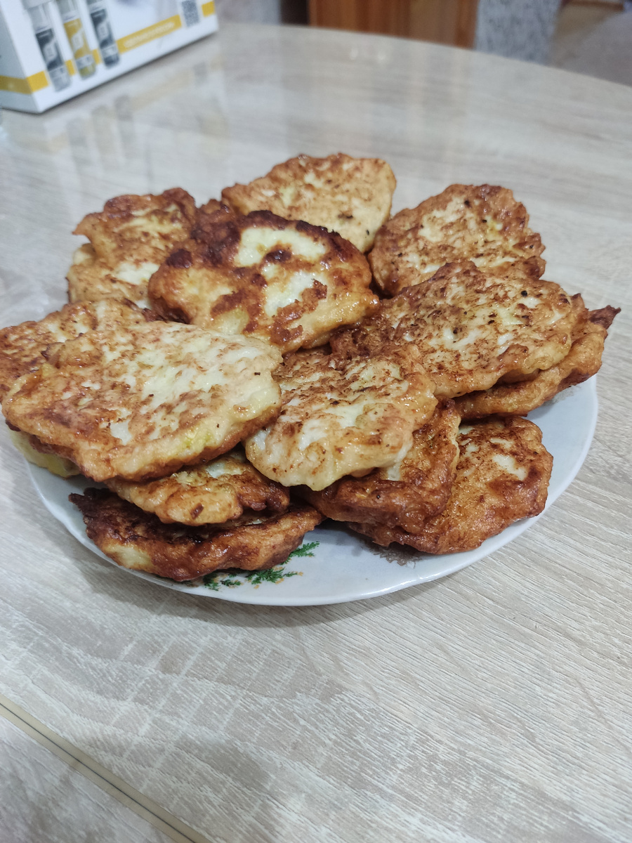 Началась летняя пора, а значит и вкусняшки можно делать прямо с огорода. Поспевают кабачки, и их много, значит нужно придумать ,что из них приготовить . Мы на этот раз приготовим оладушки. Для этого нам понадобится : Кабачки - 3 штуки Мука- 5 ложек Яйцо - 2 шт Куриная грудка -400гр Лук репчатый -1 шт Соль по вкусу Натираем кабачок, оставляем на 15 минут , что бы лишняя влага вышла, затем отжимаем и кладём в миску. Добавляем лук, измельчённую куриную грудку, яйцо,соль и муку. Все перемешиваем. Разогреваем сковороду и ложкой выкладываем смесь. Обжариваем с каждой стороны по 7 минут и получаем очень вкусные и сытные оладушки . Приятного аппетита мои хорошие 😋