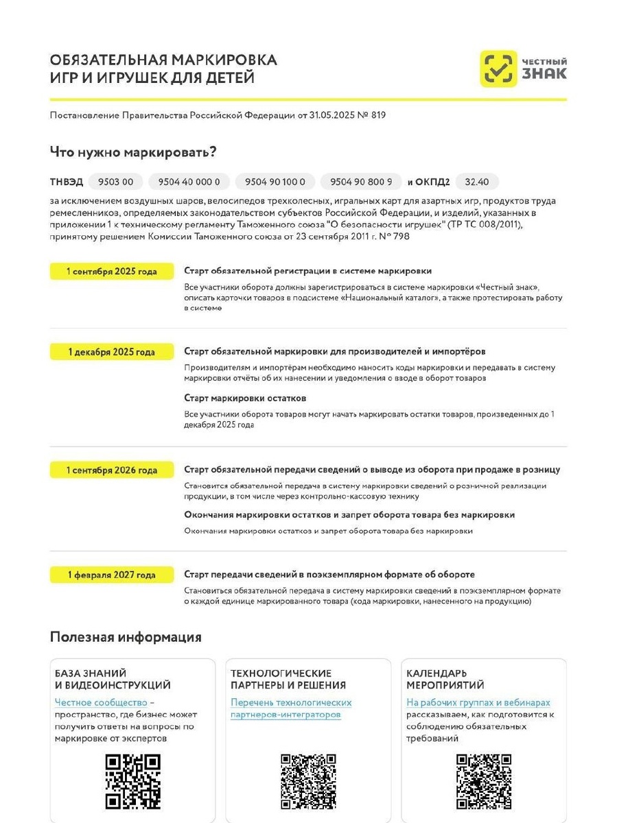 с 1 сентября 2025 года требований об обязательной маркировке отдельных видов товаров для детей.