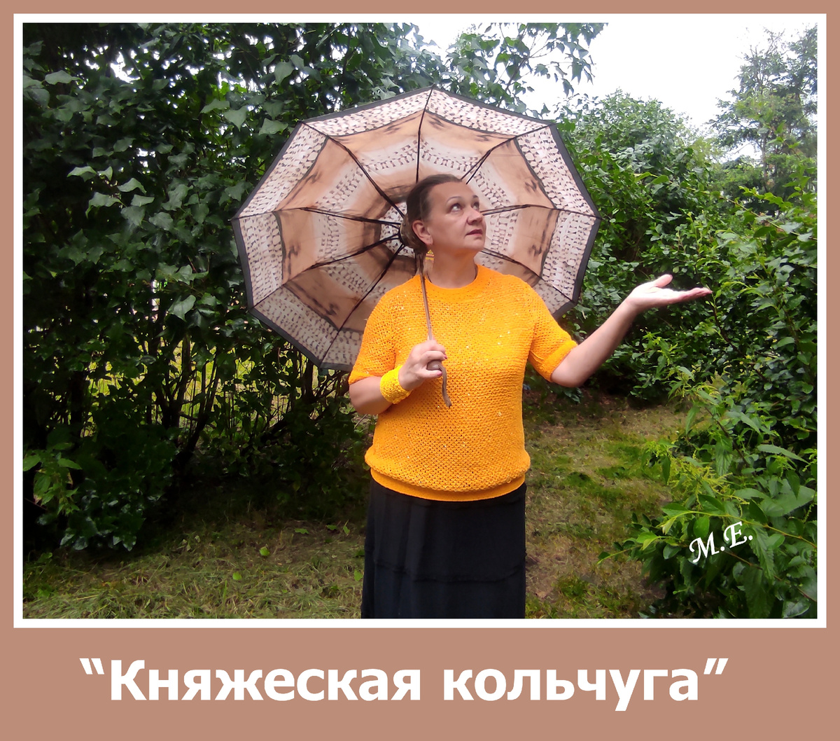 Ох, и долго ж я её вязала... Точнее - долго не вязала. Ну, не шла она мне в руки! Лежала себе и наблюдала, как я другие вещи вяжу. И шью. И тку. И плету. Но всё же нынче я закончила свою кольчугу! Боялась, что нить с пайетками будет меня царапать. Нет! Не царапает. Зато есть другое расстройство: ниточка очень легко вытягивается из полотна. И расслаивается при этом. Приходится все такие зацепы уводить на изнанку. Очень обидно, что я потеряла этикетку от этой самой нити. Могла бы запомнить, какую не стоит покупать впредь... А основная нить никаких нареканий у меня не вызвала. Джемпер связан спицами №5 и №6 (одновременно, меняя номер каждый ряд). А вот обвязка горловины, рукавов и низа выполнена крючком №3. Кольчугу я планирую носить и так, как на фото, и поверх белой рубашки. В дополнение к кольчуге я связала "поручи". Точнее, один "поруч". Он застёгивается на пуговки и может надеваться на длинный рукав рубашки тоже. Всё. Теперь можно без зазрения совести начинать новую вещь!