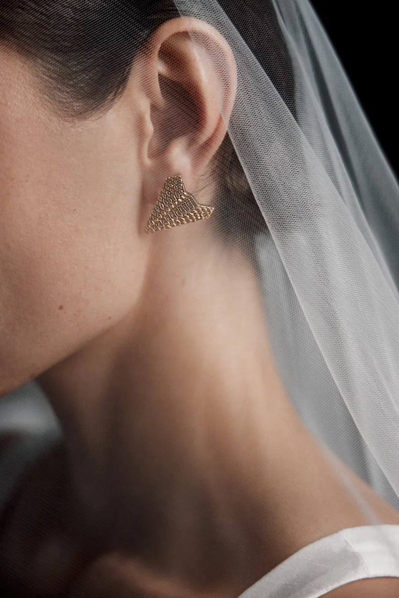 Особенные бумажные самолетики в нашей коллекции — серьги из желтого золота 750 пробы с рельефом под сказочную змею Скоропею, хозяйку леса и символ мудрости. Уверены: невесты еще не раз обратятся к украшению за «помощью» после дня X, надевая его с белой футболкой и джинсами.