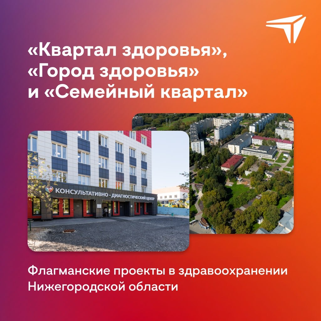 Губернатор Нижегородской области Глеб Никитин представил министру здравоохранения РФ Михаилу Мурашко флагманские нижегородские проекты комплексного развития больничных территорий — «Квартал здоровья», «Город здоровья» и «Семейный квартал». Все они — про организацию замкнутого лечебно-диагностического цикла в едином контуре и объединение мощностей близлежащих учреждений. Такой подход позволит повысить доступность медпомощи для нижегородцев. Больше о деталях — в карточках. Михаил Мурашко поддержал дальнейшую модернизацию Детской областной больницы в рамках «Квартала здоровья». Также одобрение получила инициатива по развитию онкослужбы в «Городе здоровья» — теперь при поддержке программы «Борьба с онкологическими заболеваниями» нацпроекта «Продолжительная и активная жизнь». Также глава региона представил министру здравоохранения РФ концепцию создания «Семейного квартала» в Нижнем Новгороде. На базе городской больницы № 28 создается Центр охраны здоровья семьи и репродукции. Он станет част