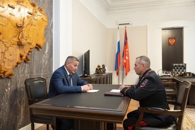 Сегодня в Волгограде губернатор Андрей Бочаров встретился с начальником регионального Главка полиции Дмитрием Свиновым. Как сообщили РИАЦ в пресс-службе администрации области, в ходе рабочей встречи были обсуждены аспекты межведомственного взаимодействия и обеспечения комплексной безопасности в регионе. Также — рассмотрены итоги работы в первом полугодии. Особый акцент сделан на безопасности объектов дорожно-транспортной инфраструктуры. Как уже сообщал РИАЦ, на вчерашнем заседании оперштаба под руководством Андрея Бочарова были обозначены дополнительные меры по обеспечению комплексной безопасности жителей и территории региона.