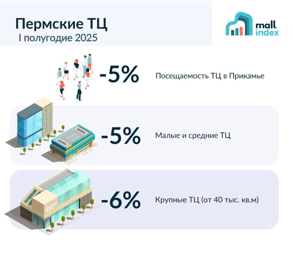 –6% — сокращение посещаемости крупных объектов от 40 тыс. кв.м