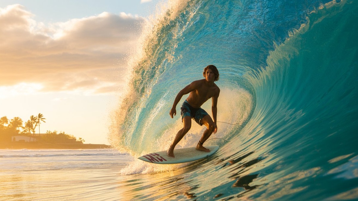 Представь: ты ловишь волну, встаёшь на доску и мчишься вперёд, ветер свистит в ушах, а вода брызгает вокруг. Ты чувствуешь силу волны, её энергию, и вместе с ней проносишься по воде. Это ощущение свободы, полёта, безграничного счастья!