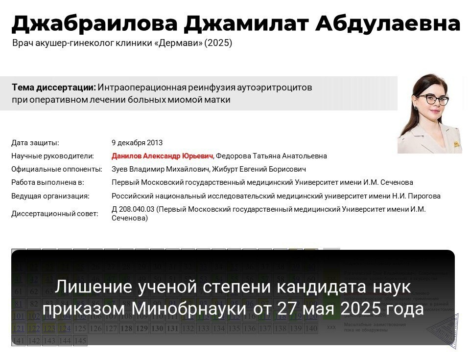 Джабраилова Джамилат Абдулаевна, НЕ кандидат медицинских наук из #ПМГМУ им. Сеченова